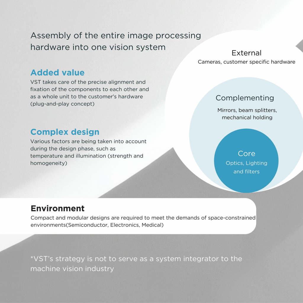 VS Technology (VST) นำเสนอชุดออปติคัล (Optical Units) และระบบการประมวลผลภาพที่ออกแบบมาเพื่อ งานตรวจสอบคุณภาพที่ต้องการความละเอียดสูง ในอุตสาหกรรมที่ซับซ้อน เช่น เซมิคอนดักเตอร์, อิเล็กทรอนิกส์, และการแพทย์