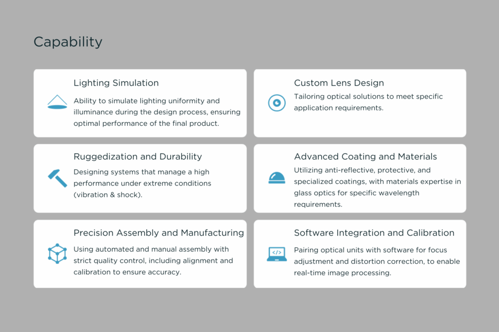 - เลนส์แบบกำหนดเอง: ปรับแต่งออปติกตรงตามงานที่ลูกค้าต้องการ