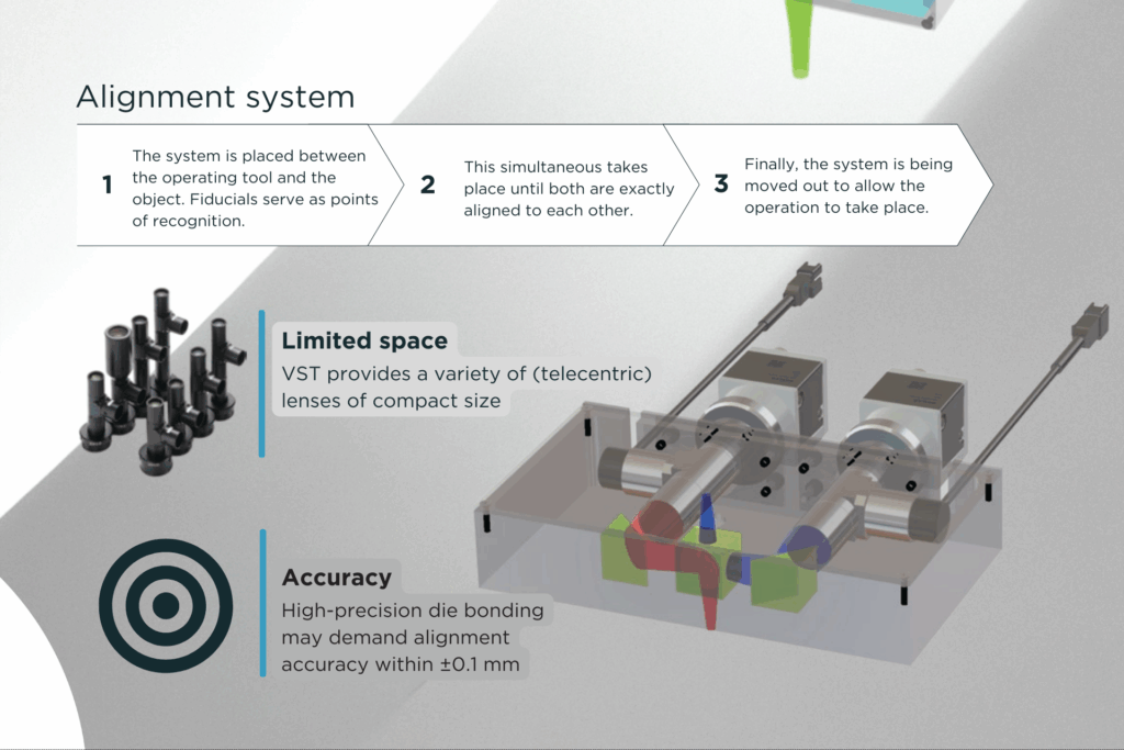 - ระบบ Alignment: ใช้จุดอ้างอิงเพื่อตรวจสอบ จัดตำแหน่งจนกว่าทุกอย่างจะตรงแนว และเปิดทางให้กระบวนการทำงานต่อเนื่อง