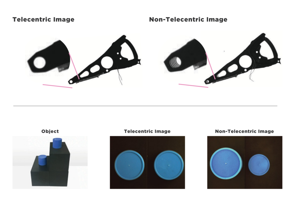 วิธีที่มีประสิทธิภาพที่สุดในการแก้ปัญหานี้คือ การใช้ Telecentric Lens ซึ่งให้ภาพแบบ Zero Perspective ทำให้การวัดขนาดและการตรวจสอบมีความแม่นยำและเสถียรมากขึ้น